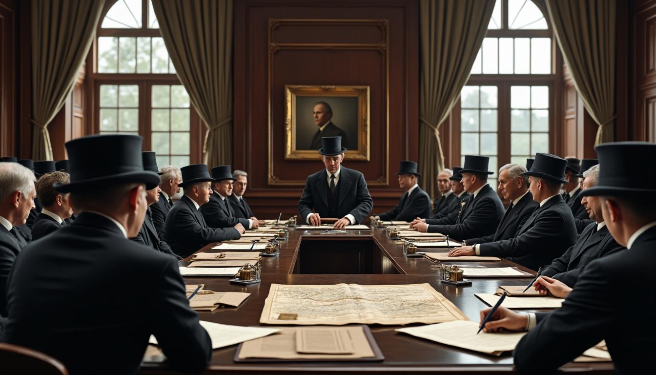 Cette signature solennelle survient au terme d’une conférence de paix organisée à Paris dès janvier 1919, impliquant 27 délégations représentant 32 nations. Autour de la table, les représentants des puissances alliées – Georges Clémenceau pour la France, Woodrow Wilson pour les États-Unis, David Lloyd George pour le Royaume-Uni et Vittorio Orlando pour l’Italie – ont mené des négociations complexes où s’opposaient des visions divergentes de l’après-guerre.